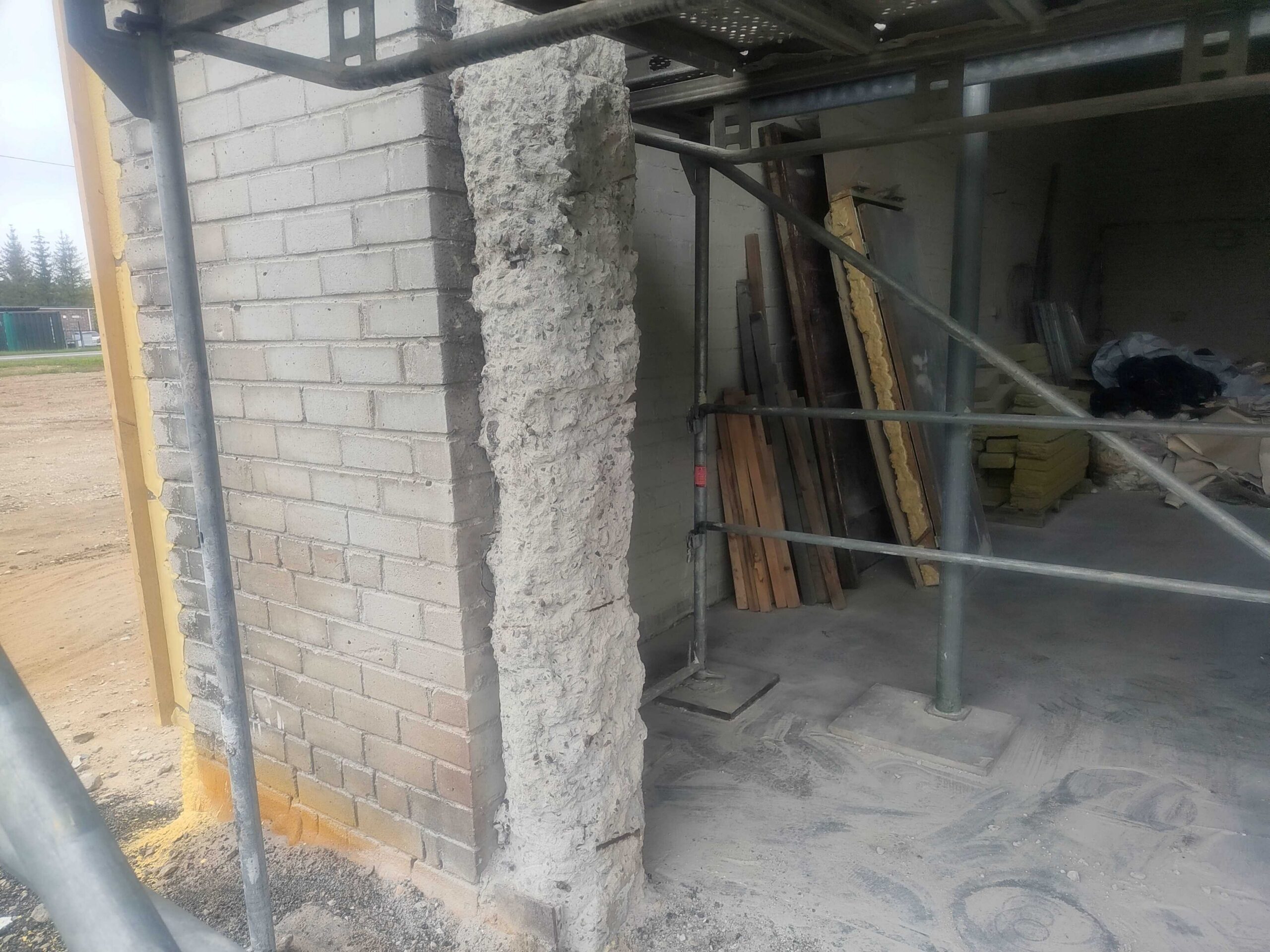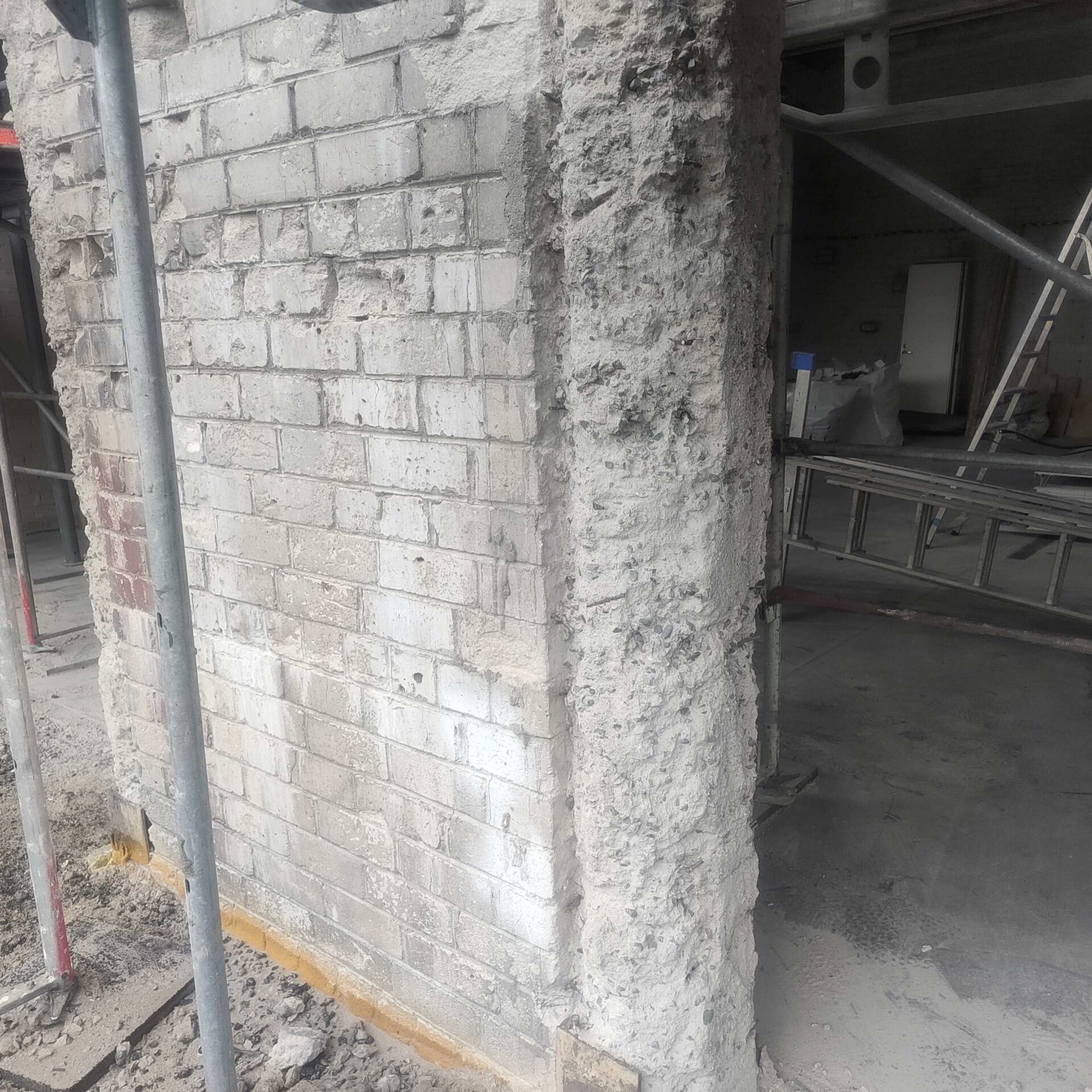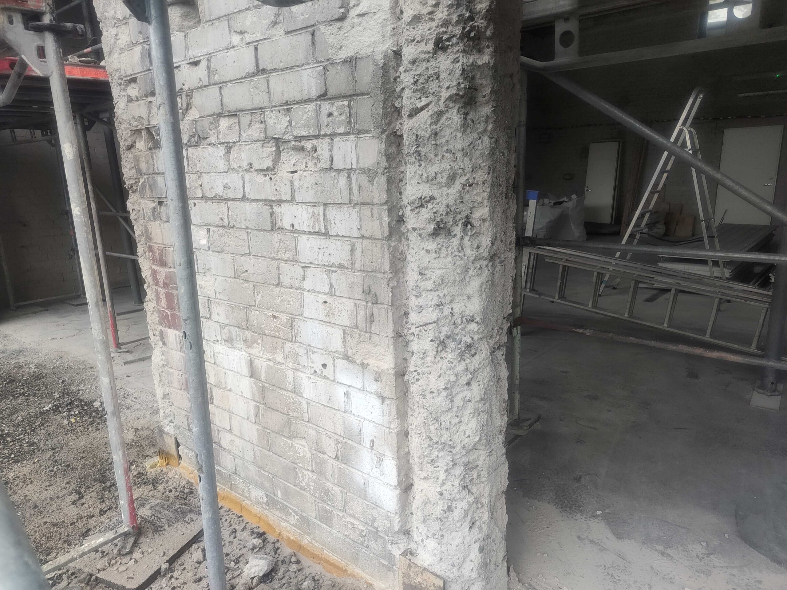 Lahtine betoon puhastatud, ukse postidelt sile armatuur eemaldatud, kõik pinnad liivapritsiga ja kõrgsurvepesuga üle käidud. Alles jäävad vinklid ja muu väljapaistev metall kaetud korrosioonikaitsega PAGEL RM02.