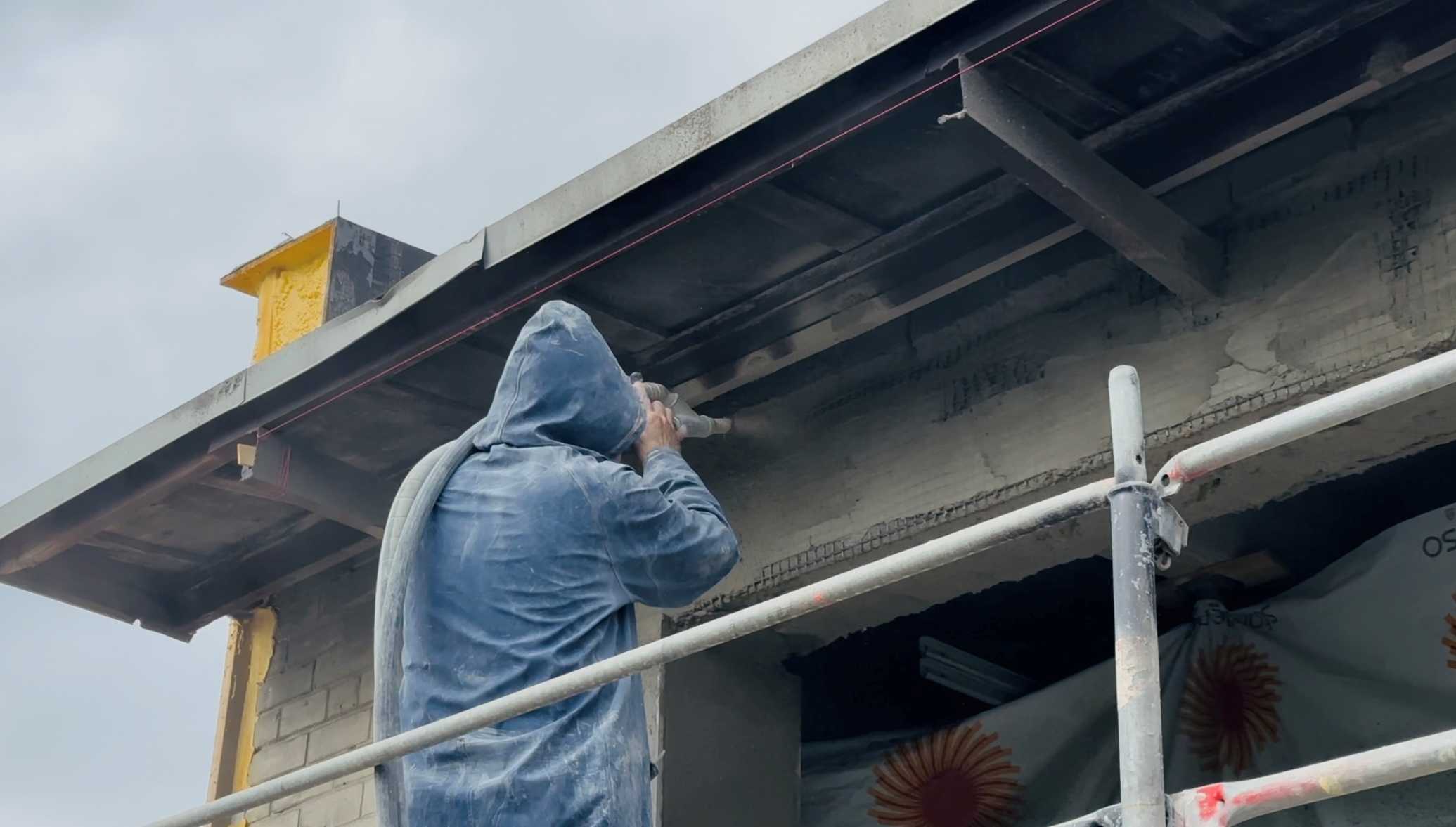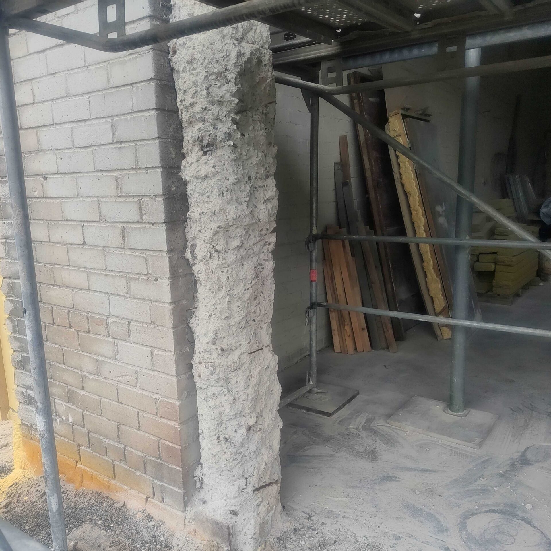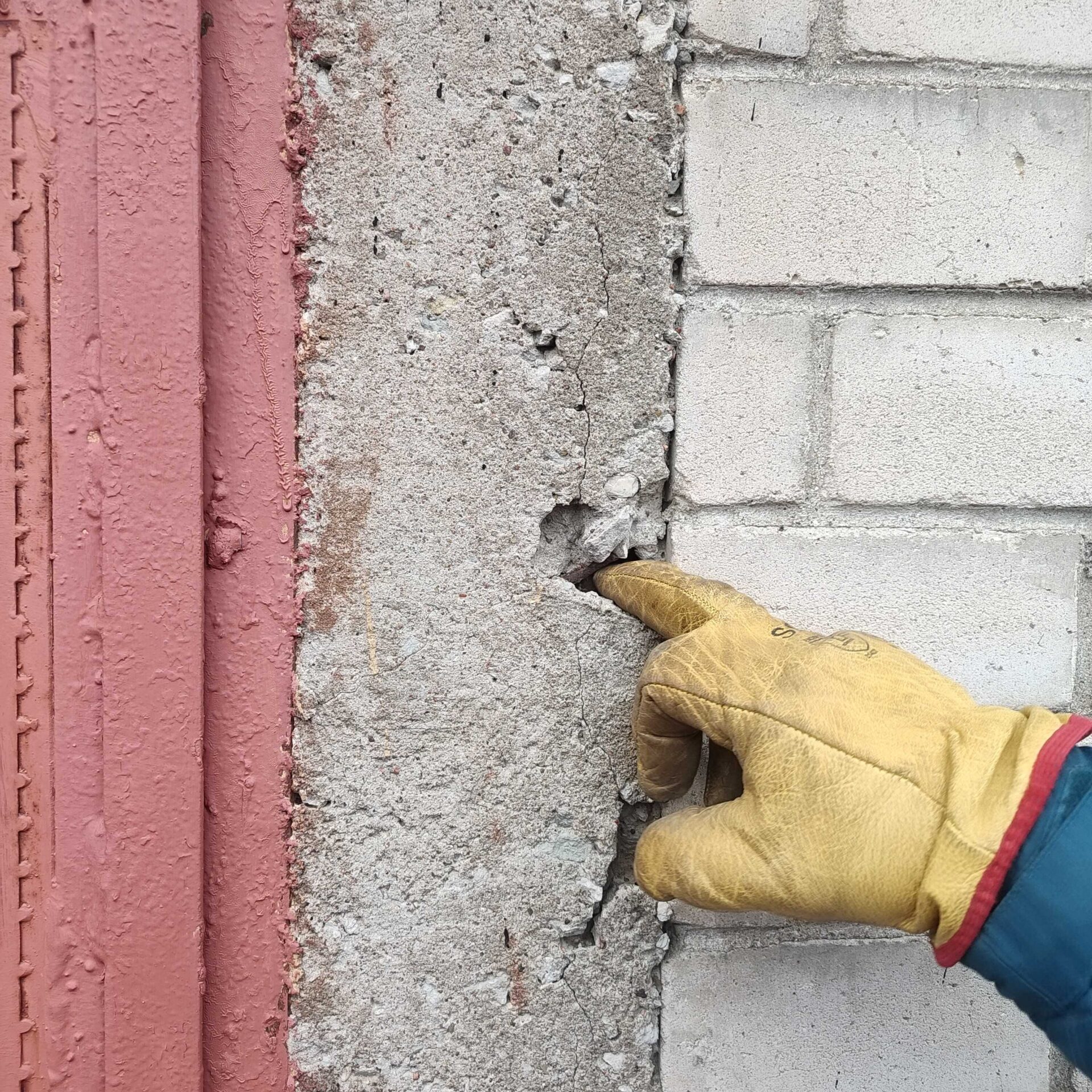 Lahtine betoon puhastatud, ukse postidelt sile armatuur eemaldatud, kõik pinnad liivapritsiga ja kõrgsurvepesuga üle käidud. Alles jäävad vinklid ja muu väljapaistev metall kaetud korrosioonikaitsega PAGEL RM02.