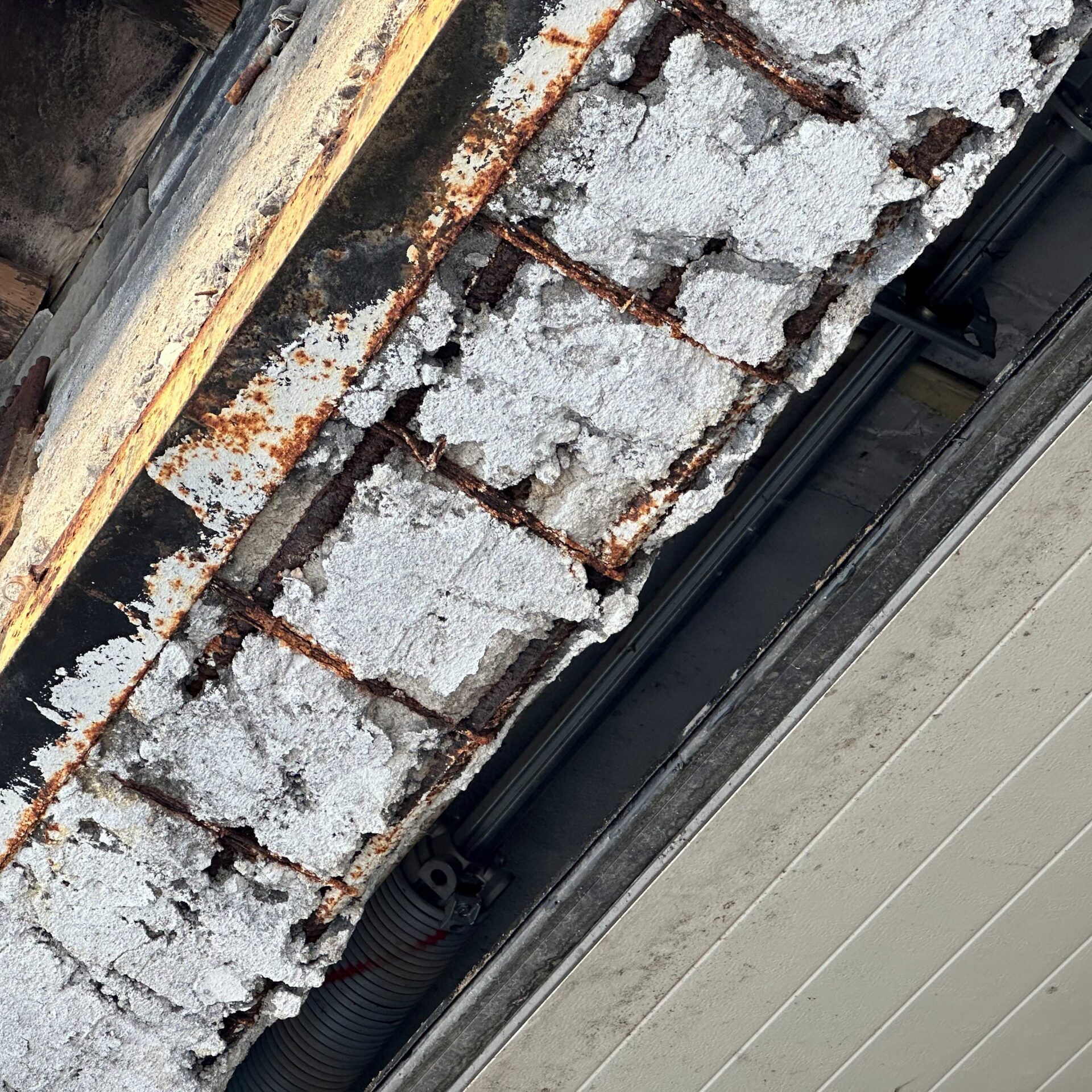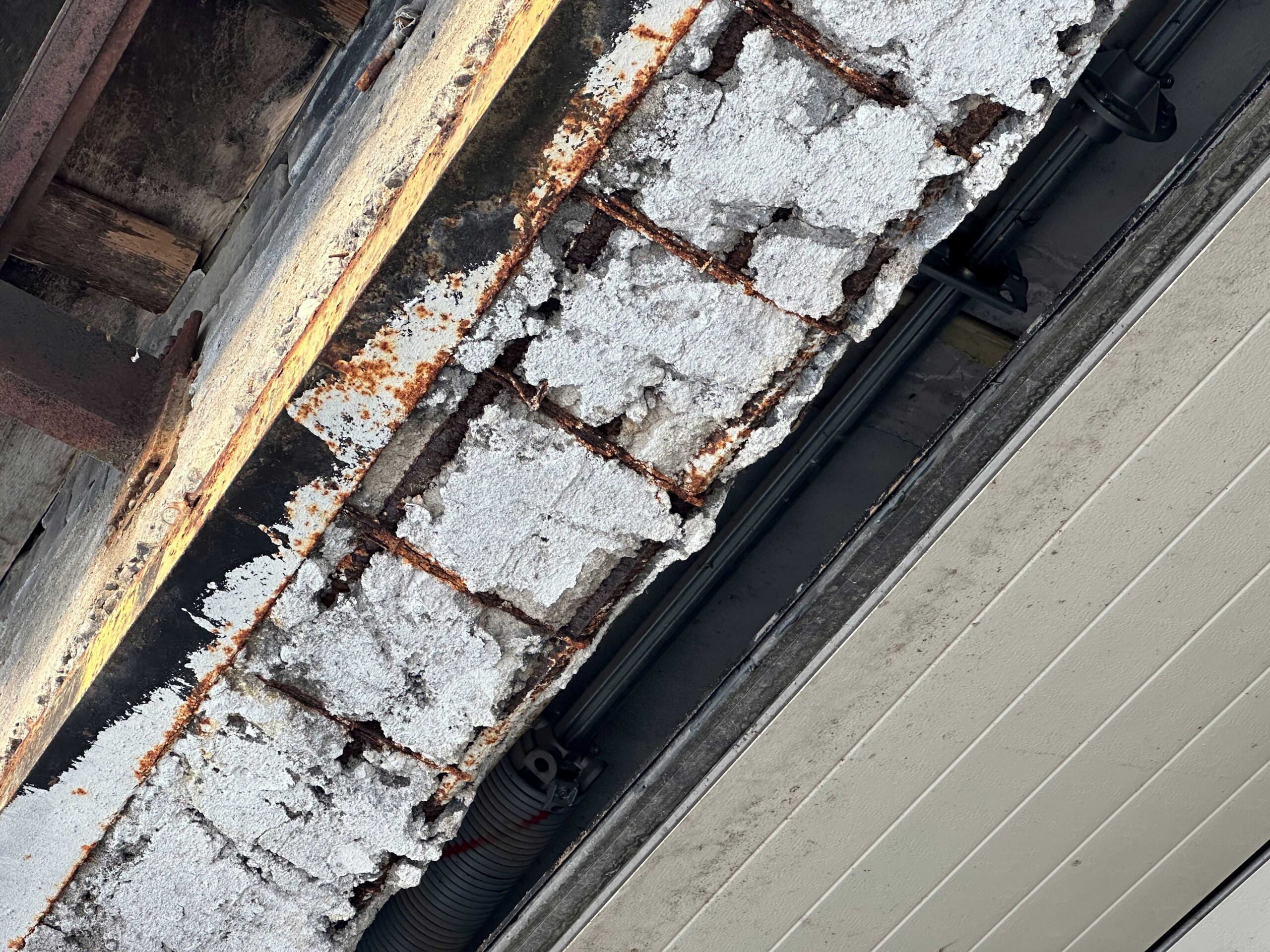 Nõukogude ajal ehitatud garaažil oli mingil ajahetkel katus läbi lasknud erinevatest kohtadest ja ka üks nurk pisut ära vajunud. Uste sillused olid koha peal valatud tugevalt üledimensioneeritud terasarmatuuri läbimõõdu ja kogusega, aga millegipärast seina kohale ulatuv osa oli ainult mõnikõmmend sentimeetrit. Lisaks oli iga sillus erineva betooni kvaliteediga – kas oli erinevatel nädalapäevadel valatud või viimaste silluste puhul oli betoon juba tarduma hakanud. Armeeringu kaitsekiht oli kohati allpool vaid sentimeeter-poolteist ja valatud betoon ei olnud korralikult armeeringu alla valgunud. Mingi osa sillustest oli nii pude, et löögi ja puurimise korral pudises laiali. Õnneks oli kõrval olev osa piisavalt tugev, et sai midagi lisaks kinnitada.